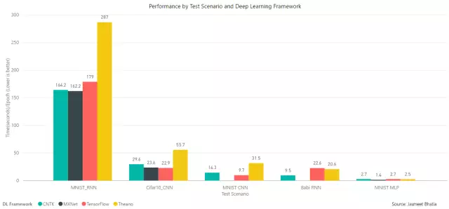 本文将对目前流行的几种Keras支持的深度学习框架性能做一次综述性对比,包括Tensorflow、CNTK、MXNet和Theano。作者Jasmeet Bhatia是微软的数据与人工智能架构师,本文内容仅代表个人观点。