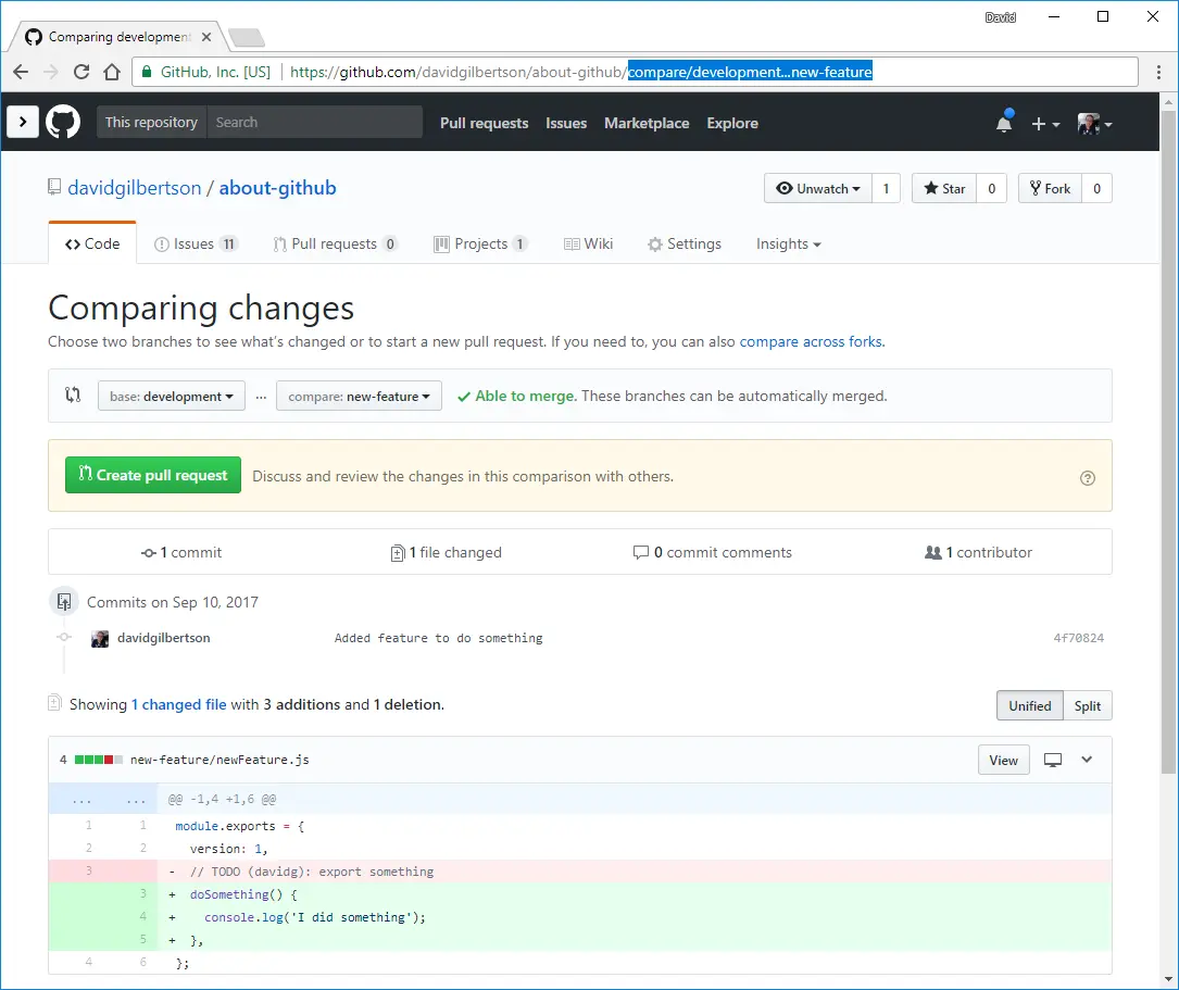 与主干对比,两个分支对比,输入/compare/**integration-branch...**my-branch