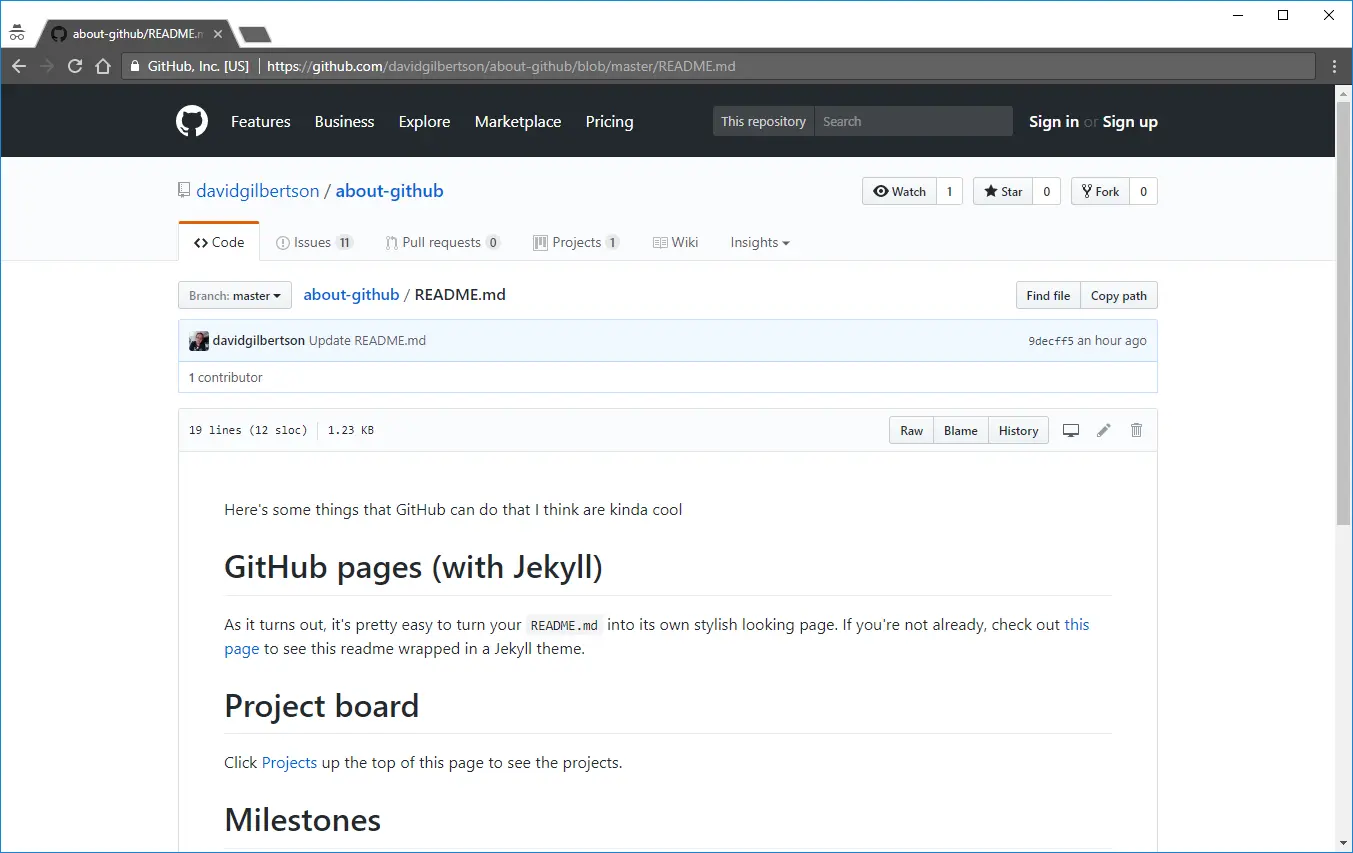 我们通过一个markdown文件就创建一个静态网站,编辑修改非常方便,所以GitHub基本上可以当内容管理系统来用了。