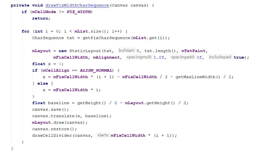 按照单元格模式【宽度自适应/固定单元格宽度】来设定计算,重新计算固定单元格宽度mFixWidth 的值,以确保能填充控件。