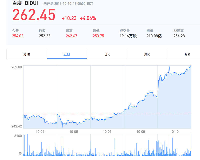在经历了近三年的低迷后,百度股价近日终于突破 260 美元,创历史新高,市值超过 900 亿美元,距千亿美元越来越近。