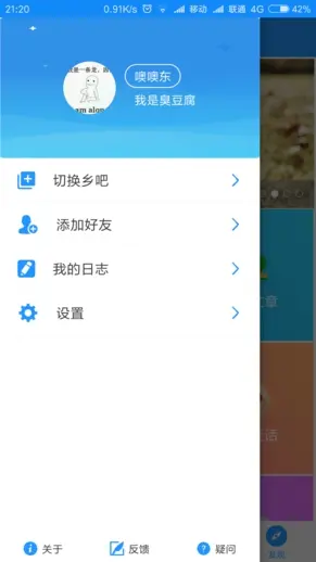 用户可以选择自己家乡的‘乡吧’进行发帖、评论、创建群或者直接与别人交流,
