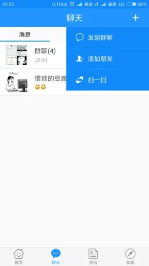 - 单聊、群聊、创建群、二维码扫描加好友、发表情、语音、视频