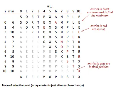 - 数据移动是最少的 每次交换都会改变两个数组元素的值,因此选择排序用了 N 次交换--------交换次数和数组的大小是线性关系(大部分算法都是线性对数或是平方级别)