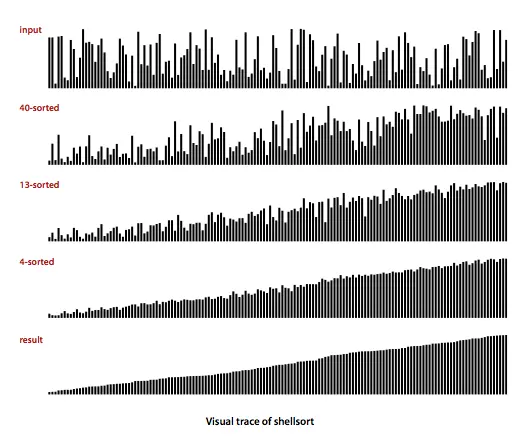 希尔排序的可视轨迹 图片来自 algs4.cs.princeton.edu