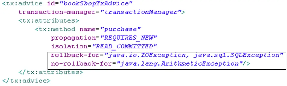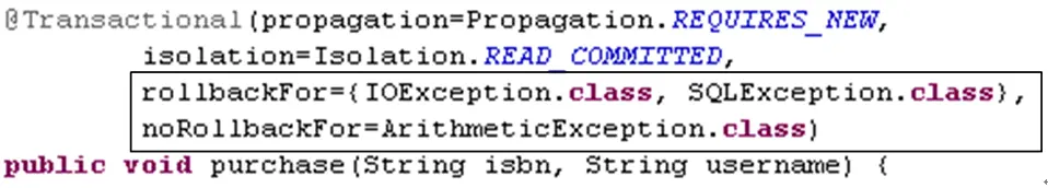 @Transactional(noRollbackFor=ArithmeticException.class,