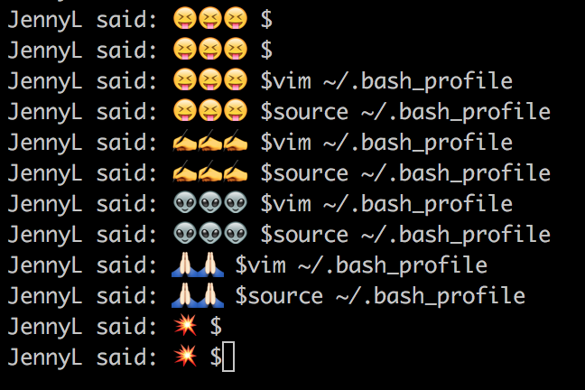 export PS1="JennyL said 😝 😝 😝 $ "
