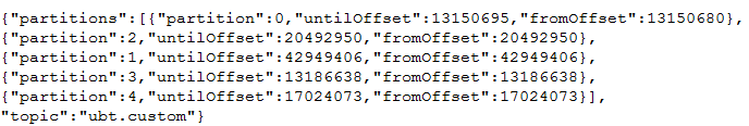 所以在muise spark core中我们加入了自己的实现用以保证Exactly once的语义。具体的实现是我们对Spark源码进行了改造,保证在创建DirectKafkaInputStream可以同时输入From Offset与End Offset,并且我们在存储Kafka Offset的时候保存了每个批次的起始Offset与结束Offset,具体格式如下: