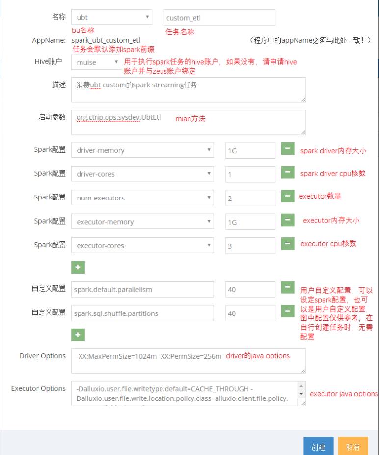 在封装完所有的Spark Streaming之后,我们就需要有一个平台能够管理配置作业,MuisePortal就是这样的存在。Muise Portal目前主要支持了Storm与Spark Streaming两类作业,支持新建作业、Jar包发布、作业运行与停止等一系列功能。下图展现了新建作业的界面: