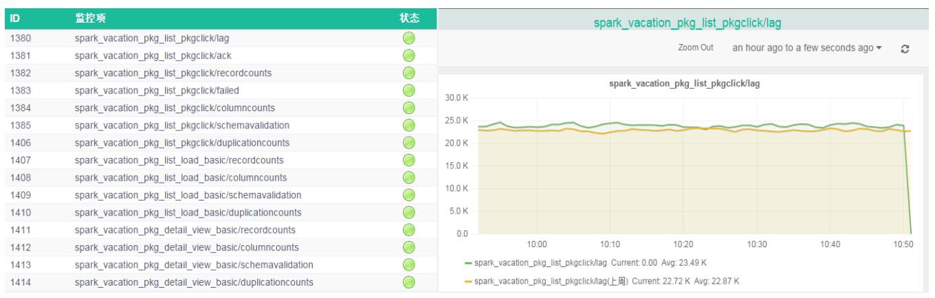 目前在ETL使用场景中较为典型的是携程度假部门的Data Lake应用,度假部门使用Spark Streaming对数据做ETL操作最终将数据存储至Alluxio,期间基于muise-spark-core的自定义metric功能对数据的数据量、字段数、数据格式与重复数据进行了数据质量校验与监控,具体的监控预警已在上面说过。