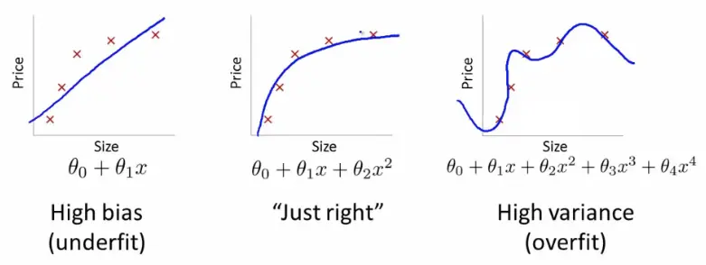 右边的模型对于训练数据是零损失的,因为它完美拟合了每个数据点。但是这个经验不能推广。对于解释不在线上的数据点来说,这是个灾难性的任务。