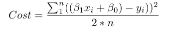 我们看到这个实际上是两个变量的函数:β0和β1。所有其余变量都是已确定的,因为X,Y和n都在训练过程中提供了。我们打算尝试使这个函数最小。