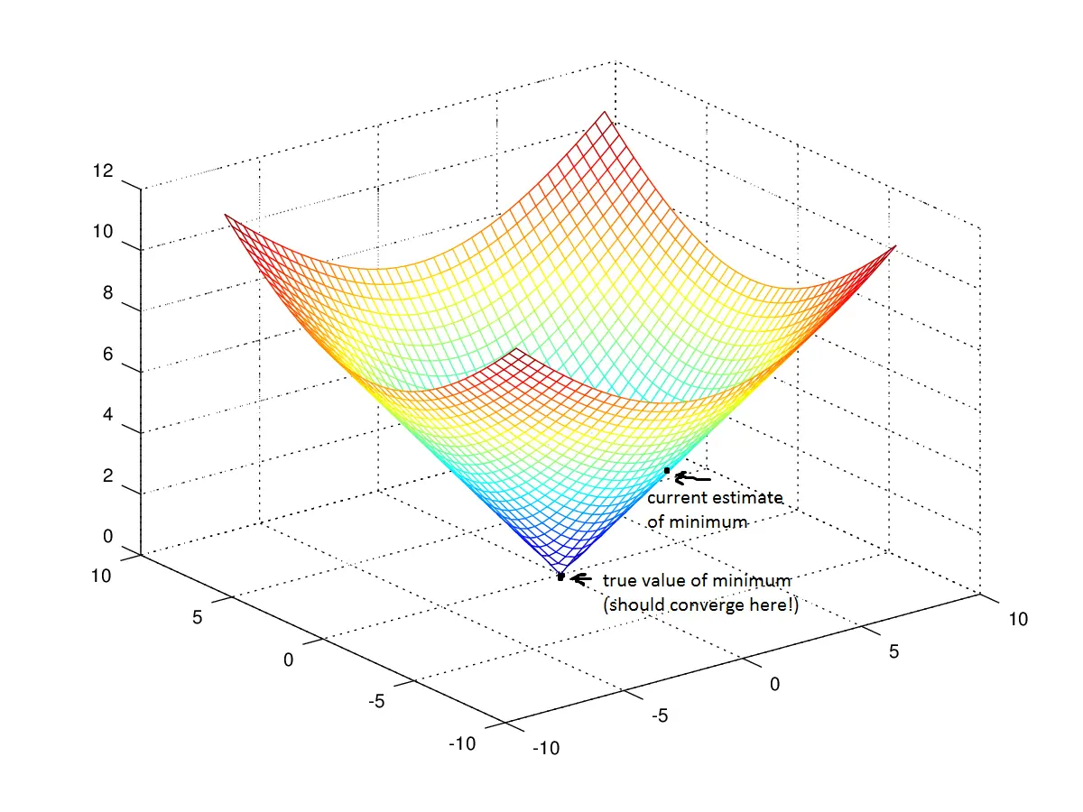 回到数学,地面变成了损失函数,山谷底部的高度变成了函数的最小值。