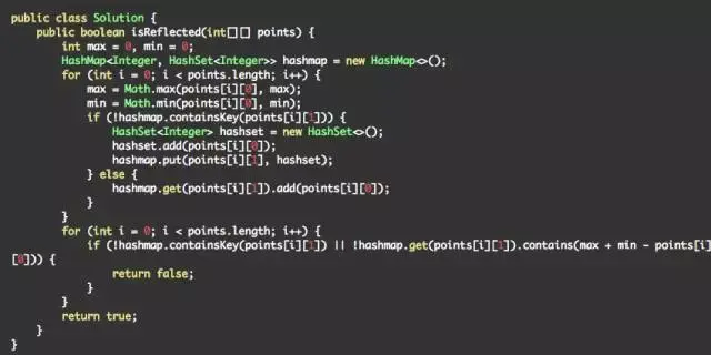 找到了对称轴的位置,我们就可以通过HashMap判断是否每一个点都有对应的点,最后输出答案即可。