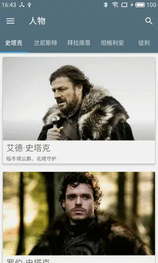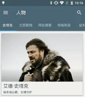 下面给大家简单介绍一下「冰与火百科」里面涉及到的 Material Design 控件。