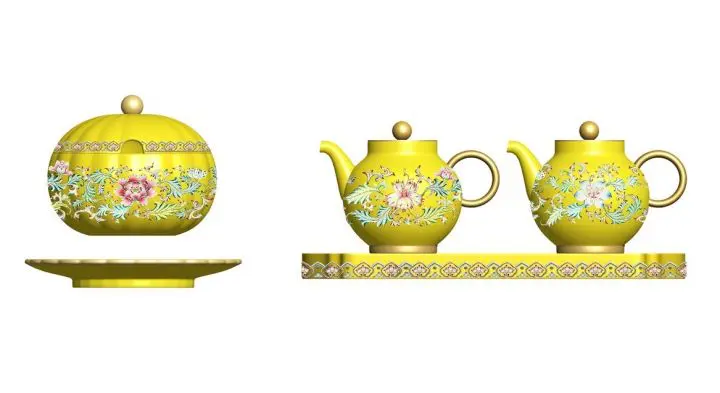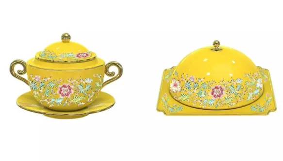 ”是《锦绣中华》的核心理念,“黄者,中和之色,自然之性,万世不易”即与天(瑞云)地(黄土)浑然一体,达到中华民族最深层的“天人合一”的包容精神,故瓷品以明黄为主色,象征着崇高、华贵、智慧、厚德、威严。