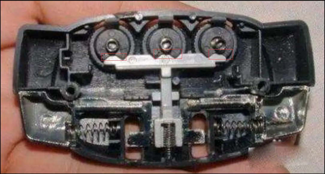 可以看一下密码锁内部结构。虽然并不是上图的内部结构,但是大致相通。如图所示: