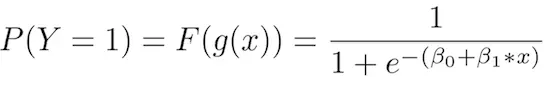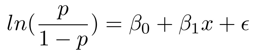 这里我们分离了p,它是Y=1的概率,在等式左边。如果我们打算求解等式右边的,非常整洁的β0 + β1x + ϵ,以便我们能够直接解释我们习得的beta参数,我们会得到对数几率比值,简称对率,它在左边。这就是“对率模型”的由来。