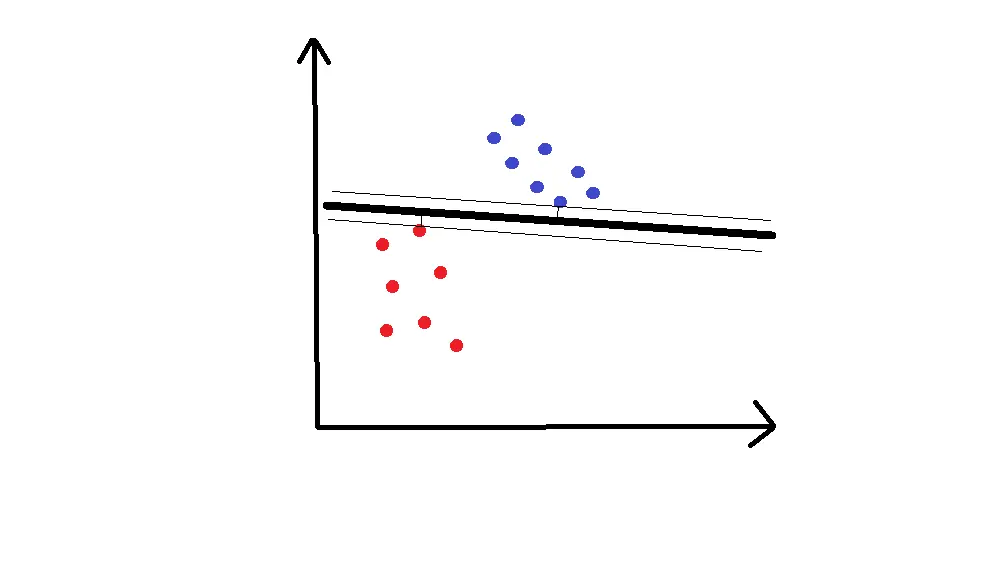 求解这个问题的人类版本,就是拿一个尺子,尝试不同的直线来分隔所有点,直到你得到了使间距最大的那条。