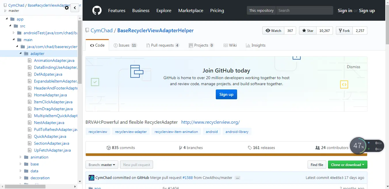 作为一名Android应用层开发人员,无论如何是肯定会用到RecyclerView的,所以此helper大有一统RecyclerViewHelper之势。