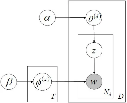 和pLSA不同的是LDA中假设了很多先验分布,且一般参数的先验分布都假设为Dirichlet分布,其原因是共轭分布时先验概率和后验概率的形式相同。
