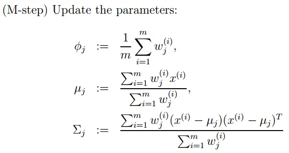 M步公式如下(计算每个高斯的比重,均值,方差这3个参数):