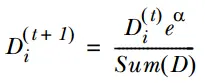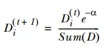 3. 通过α来计算训练下一个弱分类器样本的权重D,如果对应样本分类正确,则减小该样本的权重,公式为: