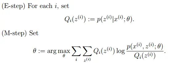 M步:结合E步求出的隐含变量条件概率,求出似然函数下界函数(本质上是某个期望函数)的最大值。