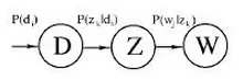 pLSA由LSA发展过来,而早期LSA的实现主要是通过SVD分解。pLSA的模型图如下: