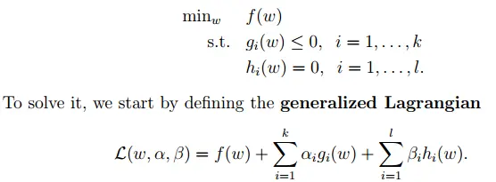 我们只需要最小化上述目标函数,其中的α为原始优化问题中的不等式约束拉格朗日系数。