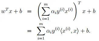 那个尖括号我们可以用核函数代替,这也是svm经常和核函数扯在一起的原因。