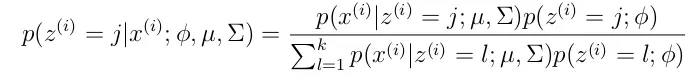 GMM的E步公式如下(计算每个样本对应每个高斯的概率):