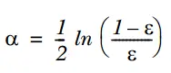 2. 通过ε来计算该弱分类器的权重α,公式如下: