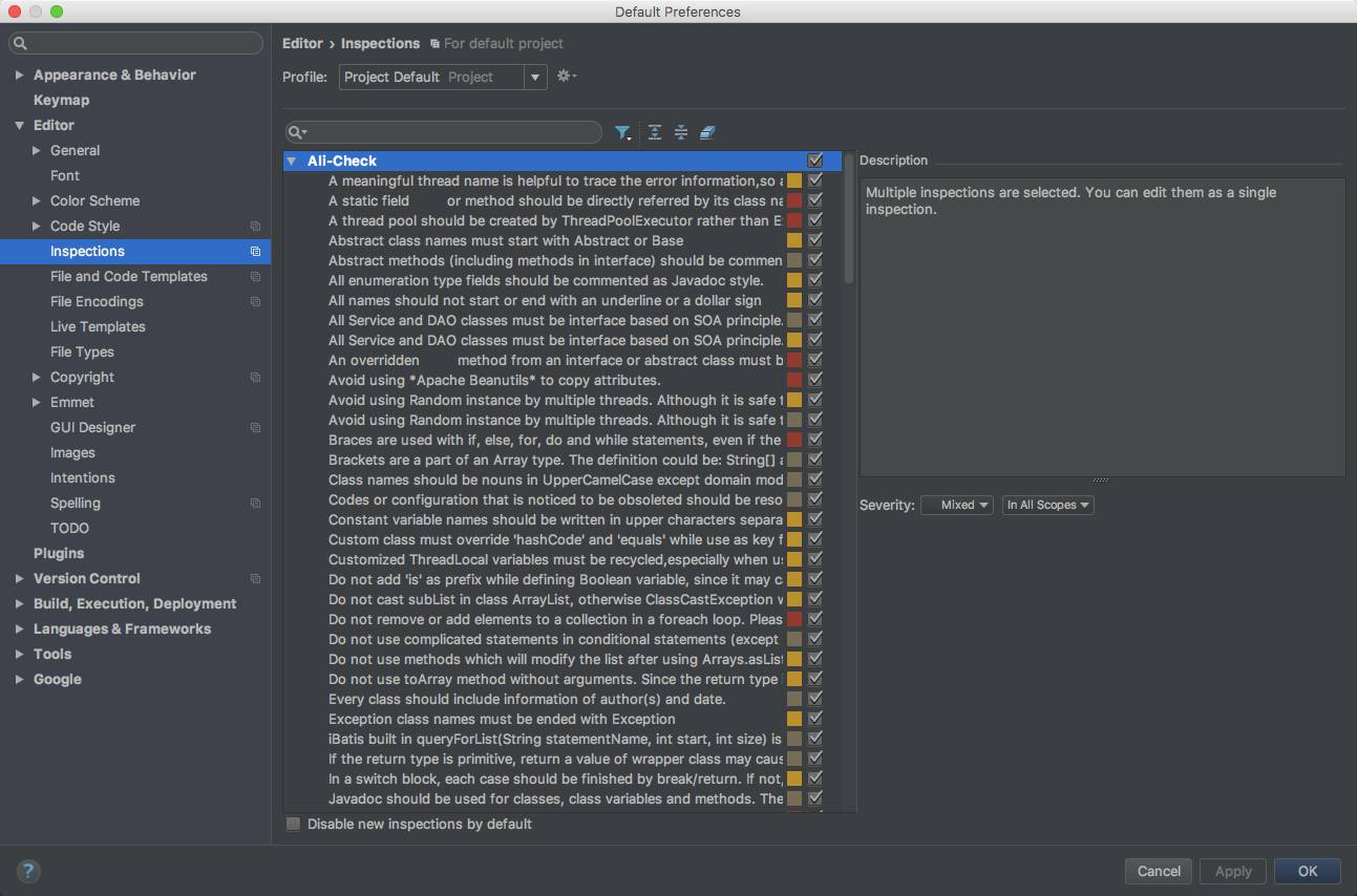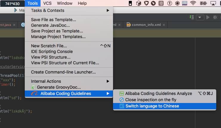 其使用过程有点类似 CheckStyle 插件。值得一提的是,阿里巴巴还提供有切换中文的功能。“从此,妈妈再也不用担心我那不及十六级的英语水平编程时磕磕碰碰啦。”