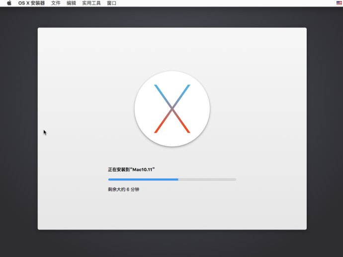 如果前面的步骤都没错,那开机就能安装了。如果能看到苹果的标志,那你就耐心地等吧,每台电脑的配置不同,所以安装的时间也不同,我的电脑用了半个小时才安装完,一般一个小时间之内肯定足够的。安装的时候要设置一些信息,下面我们来一步一步地设置。往下看。