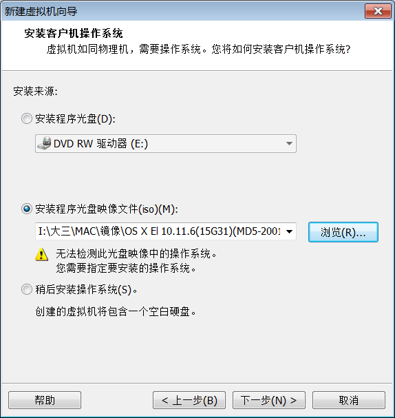 创建虚拟机的时候直接选典型就行了。下一步,选择安装映像文件,这个文件可以是.iso 文件,也可以是.cdr 文件。因为我提供的是.cdr 文件,所有需要注意,映像选择的时候是默认.iso 文件,看下一幅图。