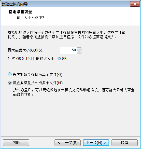 根据你的需要指定硬盘的大小,不要大于虚拟机路径下的物理盘。这个硬盘的大小的意思是虚拟机可用的最大容量,根据以后这台虚拟机使用的情况,再分配容量的,不是一设定就分配完成,所以可以放心地设置大一些。下一步。