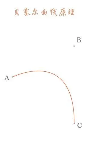 二阶曲线由两个数据点(A 和 C),一个控制点(B)来描述曲线状态,大致如下: