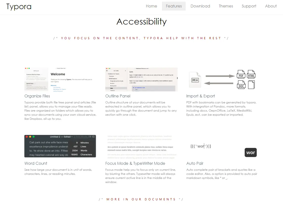 - 推荐理由:最为一款免费编辑器,可以说是相当的良心,是我目前所知道的最好用的免费编辑器了,没有之一!!!它支持多个主流的操作系统,不论你是Windows用户还是Mac用户,都能轻易的安装和使用它!除此之外,它还有多种不同的主题选择、导出一些常用格式(PDF、Word、HTML)等等非常有用的功能!