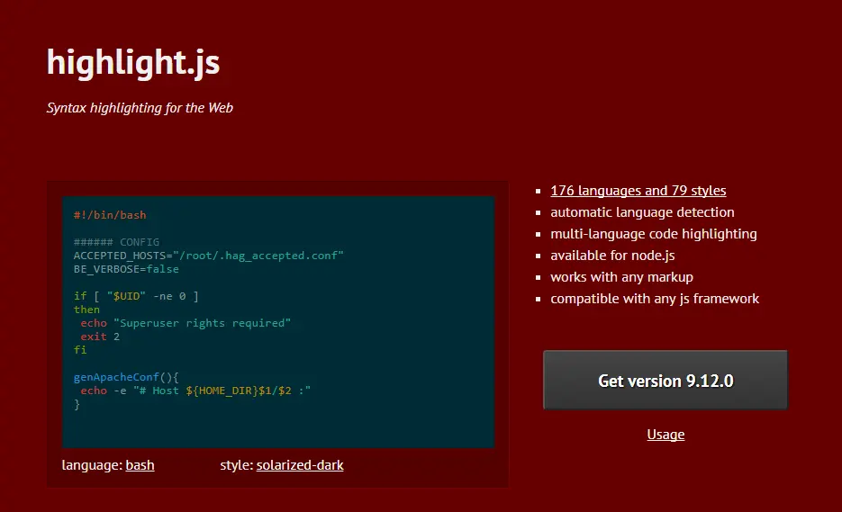 - 推荐工具:hightlight.js