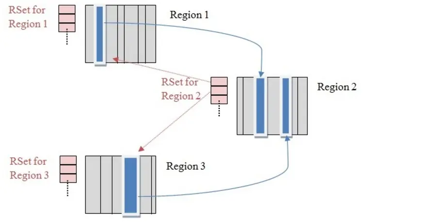 记录在一个叫做记录集 Rset(remembered set)的表中。在执行小回收(Minor Gc)的过程中,这个记录集也作为一个根来对待。
