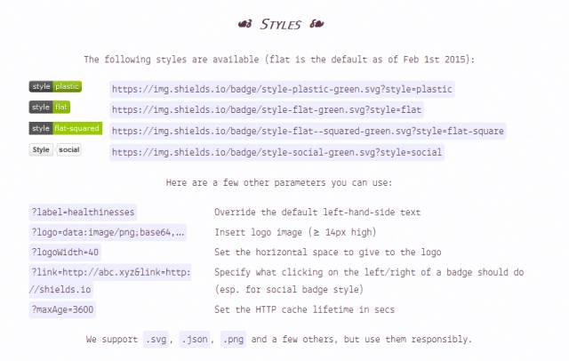 这个网站可以找到各种README的标签,标签的主要功能是展示项目的各种信息,当然主要用途还是持续性地跟踪当前库的各种状态并展示出来,而且它是自动的。比如某一个提交导致项目无法通过编译,编译标签会给出编译失败的状态,告诉大家这个库现在编译不了。再比如当前库中的某个测试用例测试无法通过时,测试标签会显示无法通过测试的状态,告诉大家,这个库现在还些问题等等。