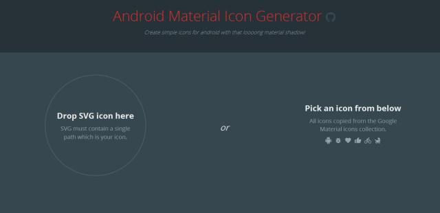 这个使用就很简单了,左边是可以自定义拖一个svg的图标进来,来生成一个你需要的icon,右边的是选择Icons are copied from the Google Material icons collection.Google的图标合集,来生成icon,下边简单演示下如何生成一个Material design icon。