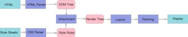 渲染引擎顾名思义,负责渲染,它将网络或者本地获取的网页和资源从字节流进行解释,呈现出来,流程如下图: