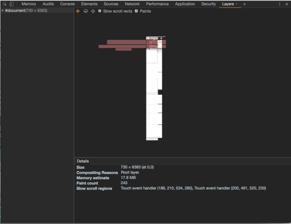 事实上,可以从chrome的开发面板中看到这些层,下图是淘宝页面的RenderLayer: