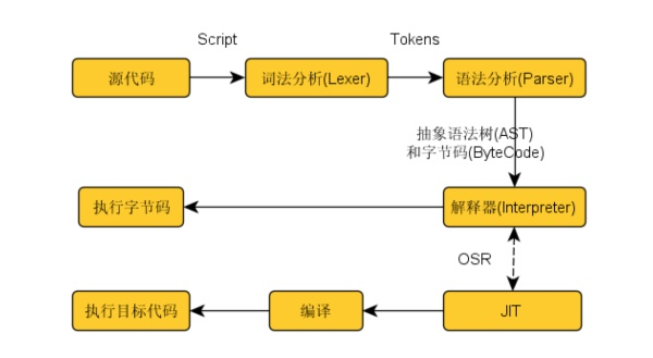 源代码→抽象语法树(AST)→JIT→本地代码