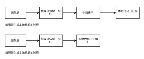 解释型语言和编译型语言的区别在于,它不提前编译,或者说,你能不能拿到中间代码。