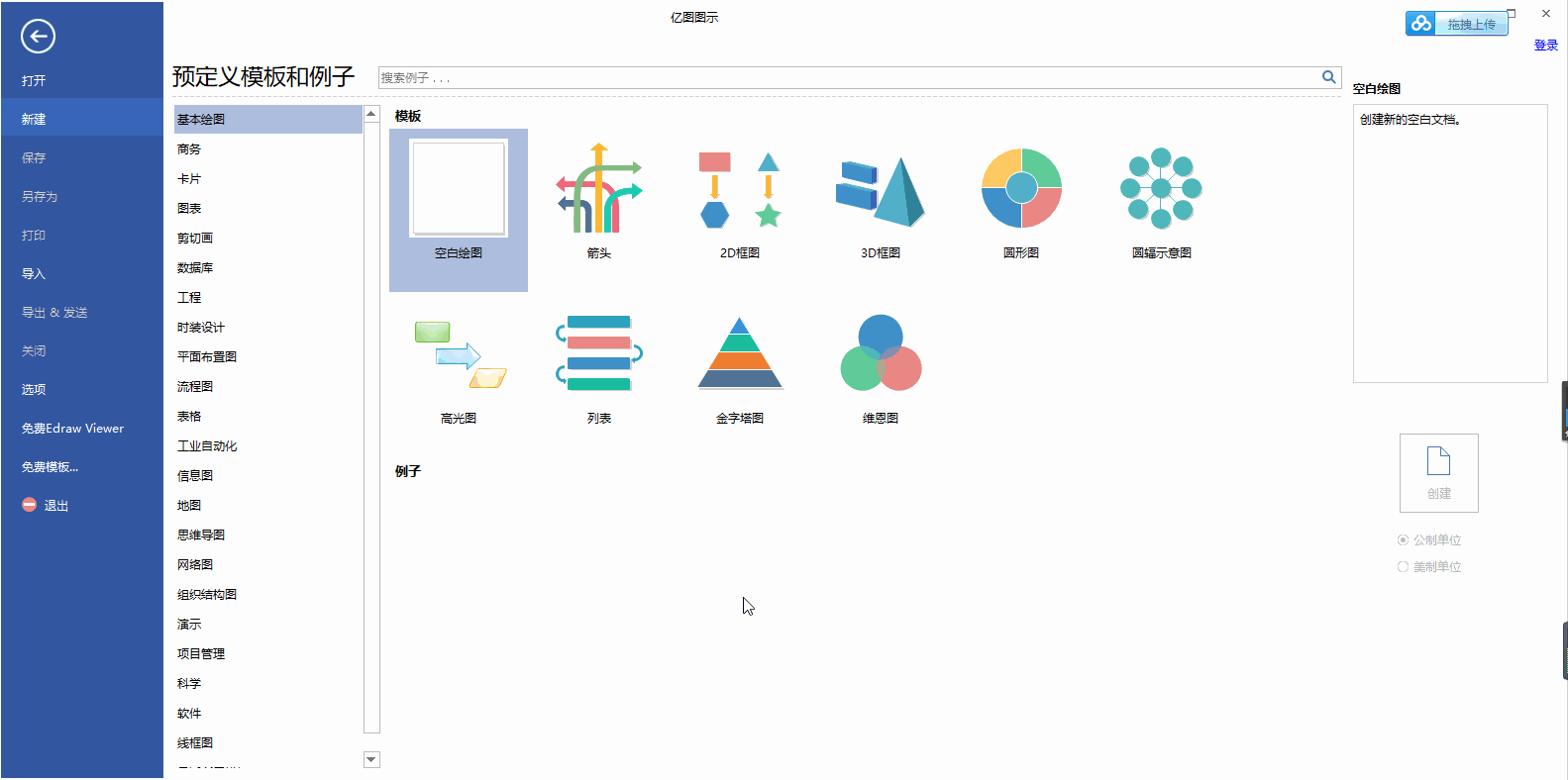 当然你也可以不用模版,直接点击新建后,选择一个你想绘制的类型即可