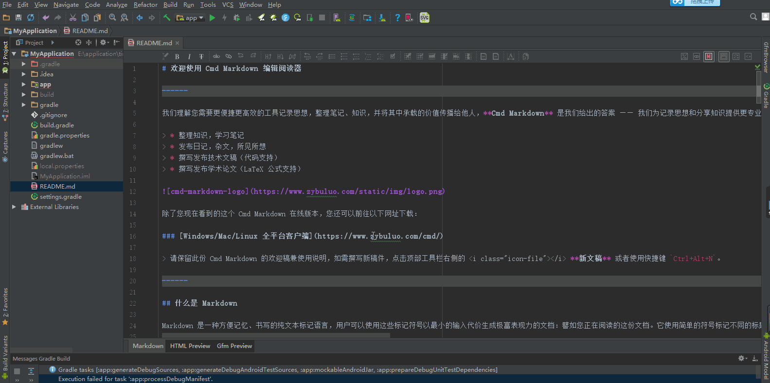 - gfm插件 这个插件可以直接在Android Studio或IntelliJ里查看和编辑md文件,对于我们平常开发来说非常方便,但是官网下载太慢,我这儿有百度云的下载地址