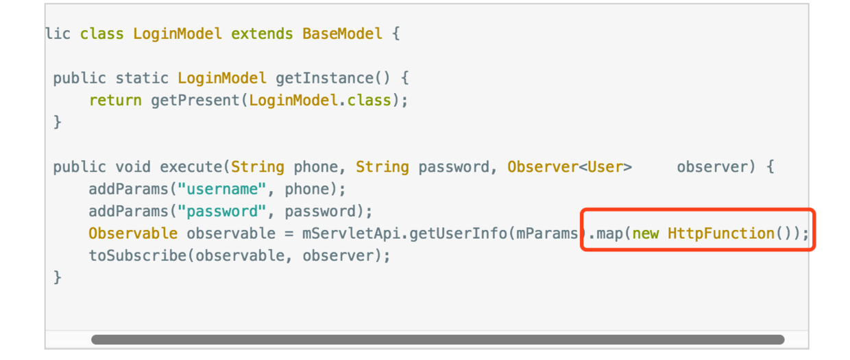 Disposable的概念,这个是用来切断观察者与被观察者之间的关系的,每次请求都会产生一个响应的Disposable,所以这里我用了一个接口BaseImpl的形式来回收它,在产生的地方收集它,在BaseActivity的onDestroy中来回收它,详细的请参见demo;好了,到这里我们的封装就完成了90%了,让我们回到上一次博客当中,组装Observable的时候我们还进行了一个map操作:
